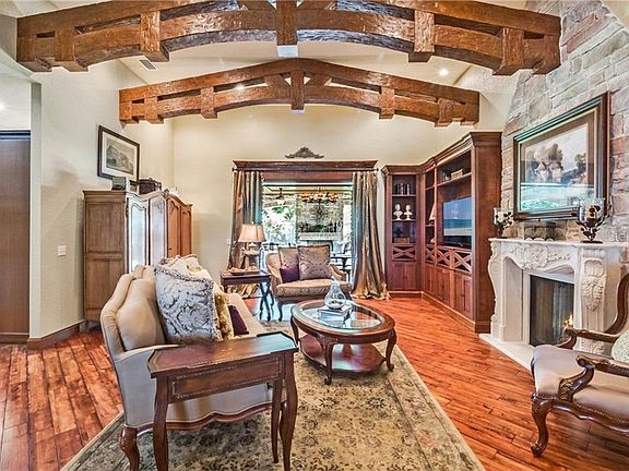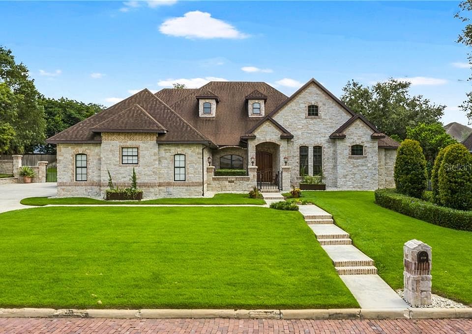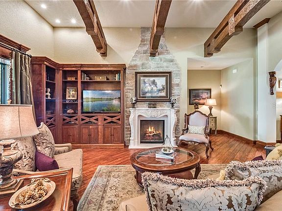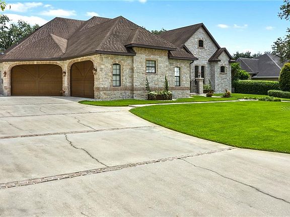 Gracious, charming, and impressive; this stately French Provincial Chateau boasts interior features constructed with luxurious appointments and is located in the heart of the coveted Lake Hollingsworth area on the brick road of Nevada. Majestically positioned on the almost .5 acre lot and constructed in 2011, this 4 bedroom, 4.5 bath home with an office was designed for entertaining, yet lends intimate venues for cozy and quiet nights in front of the 2 cast stone gas fireplace locations. 14 ft ceilings highlight the magnificent architectural beams, corbeled headers, beautiful wood flooring throughout the main living areas, and marble flooring in the baths and entry. Every window is dressed with stained plantation shutters and adorned with decorator finished drapery. The stunning dining room opens to the large family with an abundance of natural light peering in through the pocketing sliding glass doors highlighting views of the exterior stoned lanai with travertine pavered flooring-housing both an outdoor kitchen with a gas grill and a wood-burning pizza oven. Serenity abounds in the tranquil fenced-in back yard which lends plenty of room for a pool. Only the finest would do for this gourmet kitchen housing custom cabinets, poured stained concrete counters, an antiqued hammered farmhouse copper sink, upgraded Jenn-air appliances with brushed copper finishes, and plenty of eating space for entertaining guest. The master suite is beyond spacious and features an embellished tray ceiling with wooden trim, a large sitting area, and a perfect ensuite master bath with double vanities, a princess soaker tub, a walk-in glassed shower, and 2 walk-in closets. The incredible toy enthusiast's garage was meticulously planned and a labor of love, evident in the spaciously designed 750 sq ft of air-conditioned space with an additional workshop, eager to house your hobby of choice. An adjacent oversized 2-car garage is attached for daily vehicles and there is an upstairs attic space that could easily be converted to a theater room. Location is 10 minutes away from everything Lakeland has to offer and the parkway. Buyers looking for a special home, this one was made for you! Make your appointment to view it today. All buyers must be pre-approved or show proof of funds for viewing.