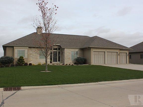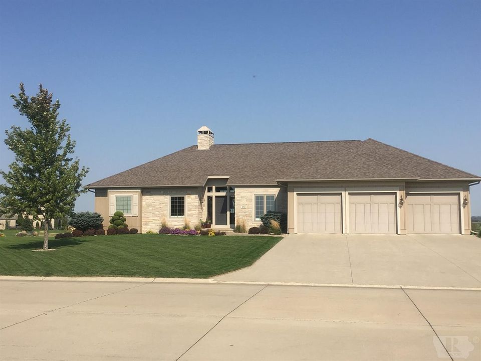 Welcome to one of the most gorgeous views of The Ridge golf course! This property is set in a prime position on #18 and has an abundance of quality and endless custom features. 4 bedrooms, 3 1/2 baths, main floor office and a tremendous living space you need to see to appreciate! Custom cherry cabinetry throughout the home, compliments of Jay Brink. Chiseled travertine tile throughout the kitchen, dining, laundry and guest bathroom. A spacious kitchen with a wall of cabinet storage and with a view that anyone would be willing to do dishes. Granite countertops, GE Profile appliances, gas stove top and double ovens. Pella windows with custom blinds, central vac, gas fireplace, main floor office with storage to be used for office or bedroom. Main floor view of course and horizon take your breath away, GORGEOUS sunrises! A large master suite with ample bedroom space, double walk-in closet, dual vanity, large whirlpool tub and a walk-in tiled shower. Basement is loaded!