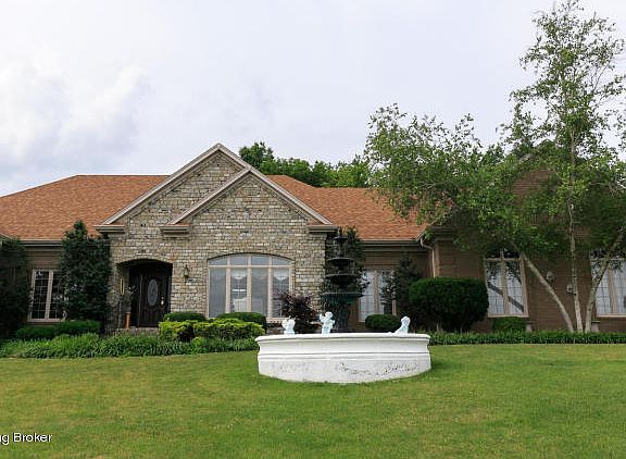 OPEN SUNDAY 3/4 from 1-3 PM! PRICED UNDER APPRAISAL!! UNIQUE HOME!! High Quality Peterson Built One Story Brick Ranch w/Finished Walk Out Basement on 6 Acres w/In Ground Swimming Pool in Derbyshire Estates. Located Close to 265 Expressway, Parks, & Restaurants. Breathtaking views from every angle of home. Enter Private Gated Driveway & Lighted Entry to Home. Enormous Great Rm w/Beautiful Inlaid Hardwood Flooring & Vaulted Ceilings. Chef EatIn Kitchen w/Granite Countertops & Island. Awesome Formal Dining Rm offers views of Fountain & Landscape. 2 Master Suites w/Lots of Windows. Several WalkIn Closets. Brand New Master Bath in 2017. Finished W/O Bsmt offers 3 Bedrooms, 2 Full Baths, Family Rm w/ Bar Area, Media Room & Storage. Executive Elevator. 3 Car Att & 2 Car Det Garage