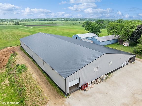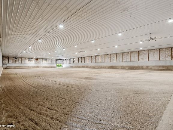 For the equestrian enthusiast, this property checks all the boxes. 100 x 200 indoor arena built in 2021, with 25 matted stalls (12 x 12). Each stall has mats that are "customized" so that they are fully fit and seamless, plus fans and blanket racks. There are two wash racks, large tack space, feed room, laundry facility, viewing area, washroom. Secondary barn (40 x 60) has 12 (12x12) stalls, limestone flooring and storage area for hay. Additional outbuilding (40 x 80) could be converted for use of stalls or hay/equipment storage. Newer fencing around 3 pastures. Separate driveway for horse facility with easy parking for trailers and vehicles and plenty of room for turn around. Apx 60 acres are currently leased by sod farmer. Drive into the private residential entrance for the separate homes and additional outbuildings including a workshop, among other storage spaces. Stately large home on property features over 4000 sq feet of living space with hardwood flooring, updated kitchen, 3 fireplaces and lots of room for spreading out and enjoying the space and views. Elegant details in this home include crown molding, staircase, wide hallways and built in storage areas. Two primary suites plus an additional bedroom/office on the second floor. In addition, a charming 3 bedroom ranch home is nestled into a space of its own and is apx 1500 sqft (currently leased on a month to month basis.) Located between Crystal Lake and McHenry, this property is close to major transportation, shopping and entertainment. Selling property "As Is"