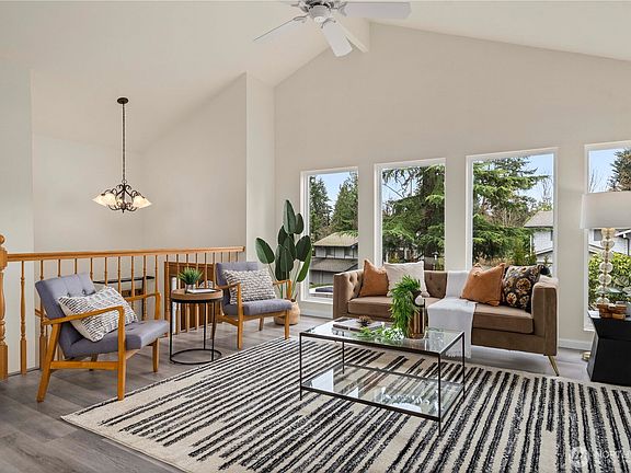 This beautifully updated home, located in a great community, features 4 bedrooms and 2.5 baths. The spacious living room boasts vaulted ceilings, while the dining room opens to an oversized deck through a sliding door. The kitchen is updated with new quartz countertops. Freshly painted throughout, the home also features new carpet and flooring. Downstairs, you’ll find a large rec room, a bedroom, and a ¾ bath. Additional highlights include a newer furnace, newer roof, tankless water heater, and two gas fireplaces. The front and back decks are low-maintenance. The spacious yard, set on a ¼-acre lot, features mature evergreen trees, curved retaining wall, and decorative ornaments, creating a serene and private natural setting.