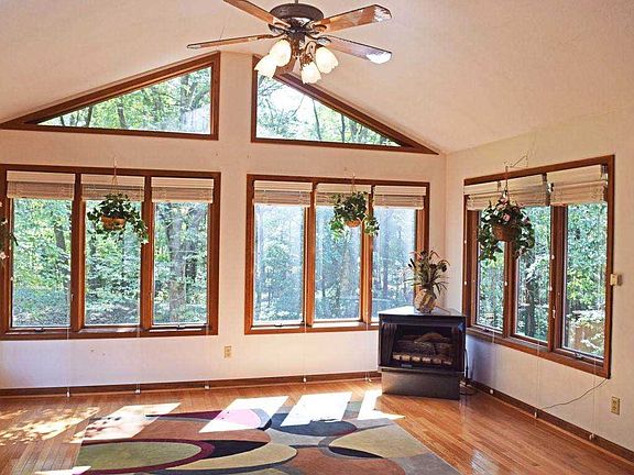 Hurry! This is one you won't want to miss! This brick ranch with finished basement boasts a breathtaking 2.65 wooded lot with an inviting sunroom that makes you feel like mother nature is inside your home! Step outside your master bedroom for coffee in the morning on your private deck or watch the wild life in the front yard from your porch swing on your covered front porch! When you walk inside the huge vaulted great room/kitchen combo this open floor plan will definitely impress. The kitchen features a breakfast bar, gas range, stainless refrigerator, dishwasher and granite counter tops.There are 3 bedrooms and 2 full baths on the main level along with an office/hobby room and a nice sized laundry room. The lower level has a cozy brick, wood burning fireplace, family room, room for a pool table, a large unfinished area and a full bath that is great for clean up after yard work. There are metal double doors in basement for easy access with large items. Immediate possession and the seller is offering a one year home warranty for buyers peace of mind!