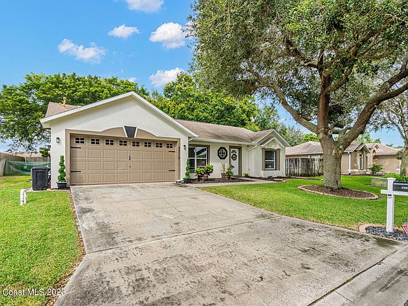 Location is everything with this beautiful home in the desirable neighborhood of Honeybrook Plantation in Palm Shores! 3 bedroom, 2 bath home with a split floorplan perfect for families. With 1,600 square feet of living space, this home provides ample room for both relaxation and entertaining. This home has vaulted ceilings that create an open and airy atmosphere, making every room feel spacious and inviting. The kitchen is equipped with stainless steel appliances and granite countertops making it a delight to host. Palm Shores is a picturesque town that perfectly combines a peaceful atmosphere with convenient access to amenities. You'll find yourself just moments away from local shops, dining, and parks.