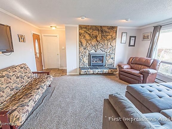 Ranch Living in South Anchorage! Have you been looking for a ranch with southern exposure?Look no further! Southern facing back yard w/french door to large deck off dining room + treed lot for added privacy! Excellent location, close to schools, shopping & trails. Home is modern, clean & move in ready!Many improvements remodeled bath 2010, newer kitchen flooring, newer roof, Bosch dishwasher 2010, newer kitchen flooring, newer roof, Bosch dishwasher 2010, new gas Fireplace insert 2011, newer garage door & Refrigerator. This home is a must see!