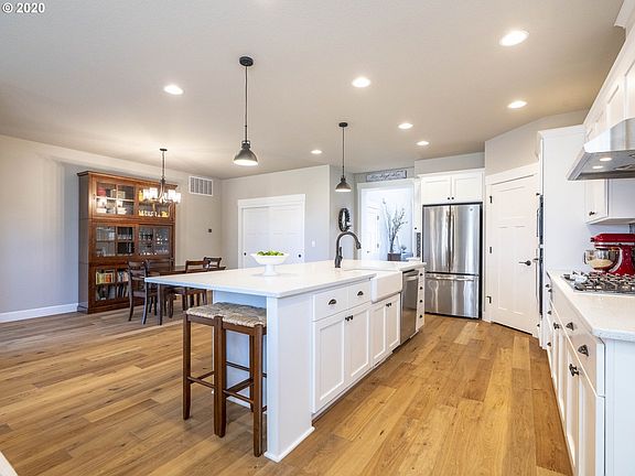Stunning Home Filled w/Elegant Touches! Multiple upgrades include plush carpet, hard wood floors, tiles for back splashes/bathroom flooring and wood wrapped windows upstairs. Large island centered in a dream kitchen w/ ss appliances & gas range. Chic lighting fixtures in kitchen and dining area with exit to the covered back patio. Master bedroom w/gorgeous en suite featuring twin sinks & walk-in closet. Directly next to the community park w/pool, basketball court, & play area!