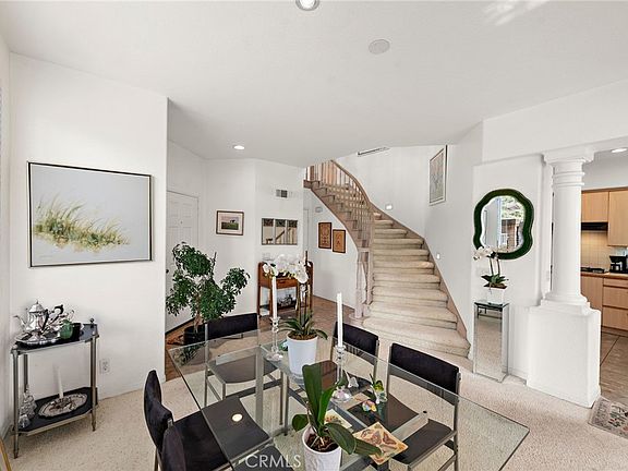 Welcome to Port Antonio Way, located in the quiet and peaceful Jamaica Condominiums! This corner unit only shares one common wall with their neighbors. The main entry is private and opens to a wrap around yard and terrace with wide open vistas of the trees and open spaces. Step into the home's entry hall that opens to the separate dining and living rooms. High vaulted ceilings and large expanse of glass, makes the main rooms bright and airy. Enjoy the double sided gas fireplace that opens to the living room and into the informal family area off of the kitchen. This family room opens to the beautiful patio and gardens with plenty of room for kids and pets. The kitchen is the focal point of your entertaining area, it opens to the family room with an open concept bar seating area. There is a guest bathroom on the main entertaining level for convenience. Upstairs you will find three bedrooms, two with their own large bath. The primary bedroom is large with a cozy separate sitting area and fireplace, it has a beautiful ensuite bath with separate shower and large tub, lots of closet space too. The primary bedroom also boasts a charming balcony with views. There is a roomy two car garage, attached with room for storage. Located perfectly to enjoy all of the wonderful things that Laguna Niguel has to offer, minutes from the beautiful beaches and steps from hiking trails, biking and all of the wonderful restaurants and entertainment the area has to offer.