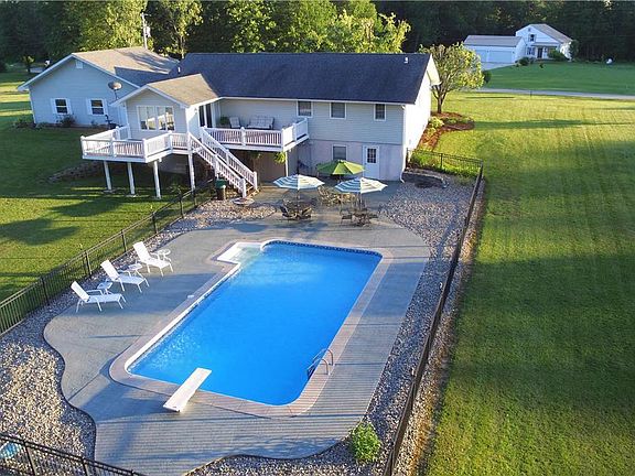 Impressive custom built walk-out ranch w/oversize 3 car garage & inground pool on 5 acres! Featuring approx. 3700 sq ft w/3 bd rms & 3 full bths, Great room, eat-in kitchen, dining room, laundry room & mud room on main floor. Head down to an amazing finished basement w/media room, rec room, kitchenette, office or sleeping area, full bath & storage areas. Out back is a breath-taking 18 x 36 inground pool surrounded by a huge stamped & stained concrete patio...OMG! Quality and custom from top to bottom, this home is a must see! 6"inch exterior walls, Anderson windows, fresh paint, crown molding, 864 sq ft 36' x 24' fully drywalled garage w/insulated garage doors, 2 freshly stained decks-20'x13' & 14'x14' overlooking pool, 2016 new pool liner, 2017 new well pump, custom this and custom that...the list is too long. Country living & private resort entertaining. Just 25 min. from Wentzville or Washington & 50 min from St. Louis or Six Flags you'll be living the life! Agent related to seller.