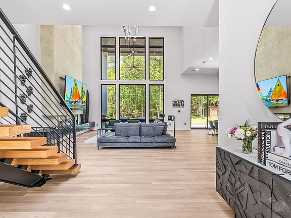 One of a kind hyper-modern 2024 estate nestled on 6.92 acres offers a rare blend of luxury, privacy and style. Conveniently located near Wildwood Park for the Arts, shopping, and dining, this home offers peace and seclusion. Every inch of this property has been meticulously designed with a seamless blend of beauty and functionality. The open floorplan is highlighted by soaring 25 foot ceilings & a striking center spine staircase, setting the tone for the entire home. The kitchen, dining room, & great room effortlessly flow together, with floor-to-ceiling windows that bathe the space in natural light—creating a welcoming atmosphere for gatherings. The living area includes a Venetian plaster fireplace. The powder room features Versace wallpaper. On the main level, the primary bedroom offers a spa-like bathroom & oversized walk-in closet. A private guest suite with full bath could be 2nd primary bedroom. Office currently serves as a nursery. Upstairs, two additional spacious bedrooms & a beautifully designed hall bath. The covered outdoor patio spaces offer idyllic private wooded views that surround the property. RV parking pad. Quality craftsmanship throughout. Luxury at its best.