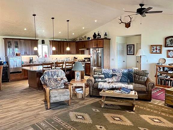 Situated at the base of Grand Mesa, this newer custom home on over 11 acres is sure to please! Wide open views are seen throughout, included in the open concept living/kitchen/dining area boasting a cozy wood burning stove flanked with windows to capture the stunning gaze of the irrigated ground, all the way down to the Delta and Montrose valleys and even the San Juan mountain range! Split bedroom floor plan with a primary suite featuring a walk-in closet and en-suite bathroom with walk in shower. Kitchen is absolutely dreamy with plenty of cabinet and solid surface countertop space, large island, and upgraded stainless steel appliances! Oversized 2 car garage houses the mechanical with a natural gas forced air furnace and on-demand hot water heater! Outside you'll find the perfect covered porches, both front and back, to take in the views, breath in the fresh country air, and get lost in the abundant wildlife neighbors. Approximately 7 acres are irrigated with gated pipe with the remaining 4+ hosting your own private piece of "forest" and a live creek. Property is ideally located just minutes to the town of Cedaredge and a short jaunt to the largest flattop mountain in the world, hosting over 300 lakes, world class hiking/cross country skiing/biking and ATV trails! Don't wait!