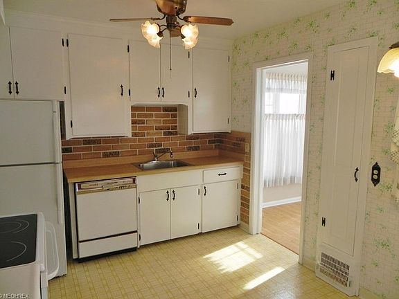 Long time owner took immaculate care of lovely bright and cheery three bedroom brick bungalow with many updates through out. Front foyer entry leads into spacious living room with large windows allowing gorgeous, natural ambiance and decorative fireplace. Eat in kitchen includes all appliances. Four season sun room framed by windows offers great rear views would also serve well as dinning area, play room, reading room or tv room. The finished second floor is the perfect third bedroom, play room or office space. Divided lower level offers recently carpeted recreation room with decorative fireplace, utility room, two storage rooms and extra commode. Updates include, freshly painted interior, flooring in four season sun room, side storm and screen door, upgraded electrical, EZ breathe installed in 2012 and entire lower level waterproofing in 2012. All window coverings stay with the home. Wonderful rear yard great for entertaining and relaxing. Brick detached two car garage with garage door opener, exterior pad opener, and second-floor storage. Conveniently located close to parks, shopping, restaurants, schools, public pool, library and easy freeway access. Just minutes to Downtown Cleveland, University Circle and Waterloo Arts and Entertainment District. City of Euclid Violation Free!