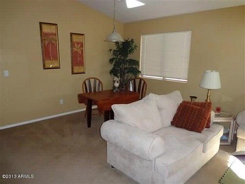 Not a short sale or REO - Private sale with quick response. Meticulously maintained home that is MOVE-IN ready - FURNISHED - YES APPLIANCES ARE INCLUDED! Spacious floor plan with ''front room''. Architectural features include vaulted ceilings, pot shelf detail, arched hallway leads to kitchen with large island breakfast bar and oversized family room. Large master Bedroom with walk-in closet. Master Bath boasts separate tub/shower and double sink vanity. Ceiling fans in all bedrooms and Family Room. Home is also wired for security. Covered Patio with large custom seating area complete with Patio Furniture and BBQ!!! JUST IN TIME TO ENJOY THE GORGEOUS ARIZONA WEATHER! Personal Items and Items in Master Closet do not convey.