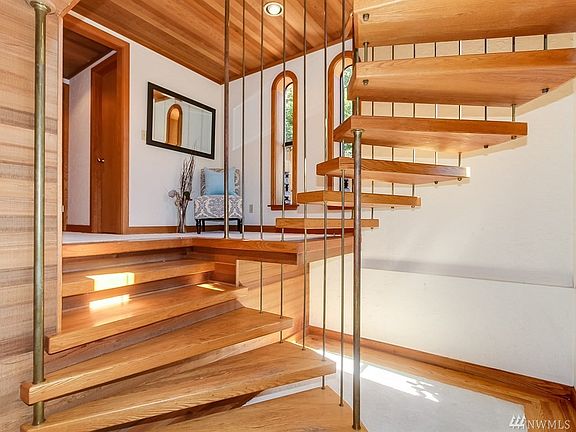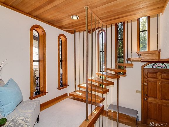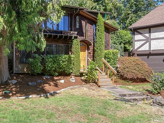 One-of-a-kind home in desirable Montlake! Lots of character & natural woods. Home is perched above quiet street, walking distance to Arboretum, UW, Link Light Rail, Roanoke Park. Abundance of light-filled windows & vaulted wood ceilings. Open, spacious living & dining area perfect for entertaining. Enjoy secluded garden patio & large front yard. Hardwood floors, fireplace in master, lead glass, generous storage, plumbing for wood stove, new carpet & windows, 50yr warranty roof. Appliances stay!