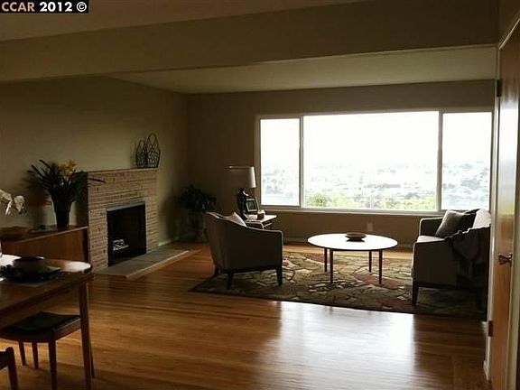 Huge picture windows to enjoy amazing views of San Francisco Bay and beyond. Gleaming hardwood floors and new paint throughout. Spacious rooms with abundant storage. Huge bonus room possible 2nd master suite - 2 Fireplaces - Quaint garden for entertaining and gardening Open Thur 11:30-1:30