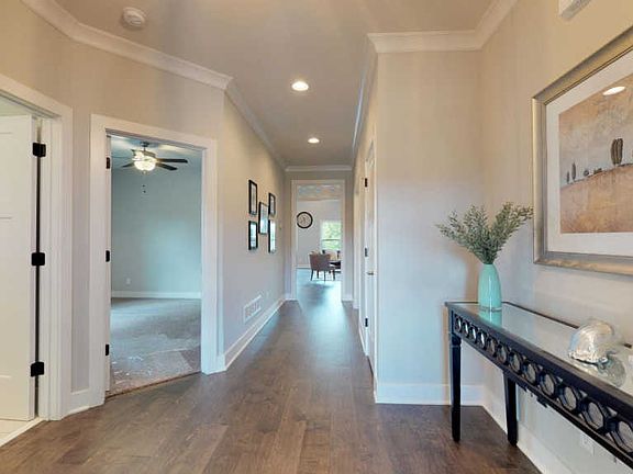 Hardwood floors, eat in kitchen with custom cabinetry, granite countertops, stainless steel appliance package(doesn't include refrigerator), & tile backsplash. Great room with corner gas fireplace, 12 ft. ceilings, wall of windows, open to the kitchen. Master bedroom with a 9 ft. hip vaulted ceiling, en suite bathroom with large tiled shower, double vanity, private toilet, and large walk in closet that also opens up to the laundry room. The lot overlooks a tranquil pond. The location is a bonus as it is only a 5 minute drive to the Parklands of Floyds Creek.***There will be another entrance off Clark Station Rd. in the next few months***