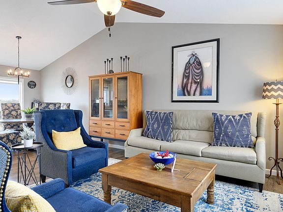 Rare opportunity to own a large 3 bedroom, 3 bath rambler in the much sought after Rodeo Hills of Buffalo. Vaulted ceilings and a chef's kitchen with quartz countertops and an oversized island complete the spacious main level rich with great natural light. Enjoy sunsets with a pond view from your expansive deck overlooking your fenced-in yard complete with in-ground irrigation system. Add in the massive finished downstairs rec room with full walkout and there is a ton of space for the whole family.