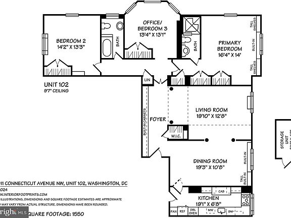 PRICE REDUCED! A must see! Welcome to The Woodward, a historic treasure in Kalorama, originally built in 1911 and converted to a condominium in 1973—one of the earliest in Washington, D.C. Featured in James Goode’s Best Addresses, this landmark building is renowned for its Spanish Colonial architecture. Among its most striking features is the elaborate, baroque, three-story-high polychromed terra cotta entrance with ornate columns. The Woodward is ideally located in Kalorama, close to the Dupont and Woodley Metro stops, The Phillips Collection, restaurants in Dupont, Adams Morgan, and Woodley, as well as numerous shops, coffee and gelato bars, galleries, supermarkets, the famed Sunday Dupont Farmer's Market, and all essential services. Designed by renowned architect Beverly Willis, this spacious and updated 3-bedroom, 2-bath residence is thoughtfully crafted for both style and function. At 1,550 square feet (per floor plan), the home flows elegantly from room to room, perfect for entertaining, with 9’+ ceilings and stunning wood floors throughout. The living and dining rooms feature stately (decorative) columns, creating an ambiance of timeless sophistication. The kitchen features Thermador and Sub-Zero appliances. The private bedroom wing includes a primary suite with ample closets and an en suite bath finished with Carrara marble. Two additional bedrooms and a full bath with complete this well-appointed space. Community features include a daytime/weekday front desk, a large roof deck with sweeping views of the city, National Cathedral, and Rock Creek Park and ample seating, and communal laundry facilities (located just 15 feet down the hall). The condo fee covers all utilities, and the building is pet-friendly with some restrictions. No parking conveys but residents are permitted to park in the front driveway circle for up to 15 minutes for unloading purposes. Embrace the opportunity to live in this historic and charming residence, where convenience meets classic elegance in one of D.C.'s most coveted neighborhoods.