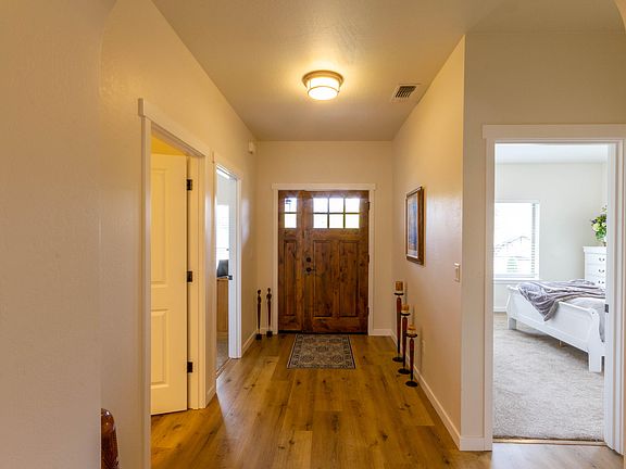 Nestled in a serene wooded setting, this exceptional home combines tranquility with convenience. The open floor plan and luxurious LVP flooring throughout create a seamless flow between living areas and the exquisite kitchen, complete with hickory cabinets, granite counters, and stainless-steel appliances. The walk-in pantry offers ample storage. The primary suite includes a versatile workspace/sitting area, and both bathrooms feature meticulous custom tile work. Enjoy mountain views from the front bedrooms and the beauty of nature from the family room overlooking the serene backyard. The fully fenced yard boasts meticulous landscaping, a meandering rock waterfall, and privacy. The finished, attached oversized garage provides ample parking and storage, complemented by closets throughout the home. This meticulously maintained property showcases pride of ownership. Don't miss the chance to experience refined living in this remarkable home. Schedule a viewing today!