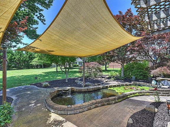 MULTIPLE OFFERS RECEIVED. Please bring your best in the highest by Monday 5/29/23 at 5pm. Don't miss this FULL brick ranch home nestled on a gorgeous plush 1.06 acre lot! NEW ROOF and gutters in 2020! Fenced backyard surrounding an oasis with a KOI pond, waterfall feature, gorgeous mature red Japanese maples and in ground irrigation. This home is well maintained and upgraded with all brand new windows (2021), bamboo gray flooring, solar panels for energy efficiency, in ground irrigation, neutral paint, and lovely marble floors in entry and kitchen. Kitchen features granite countertops, tile backsplash, and all brand new black stainless steel upgraded appliances! Great room features a cozy gas log fireplace. Large primary suite with walk in closet. This home features an attached 2 car garage AND an additional oversized (32x32) detached 2 car garage. (detached garage can fit up to 4 vehicles, 1024 sq,ft.) AMAZING HOME with an oasis backyard with so much privacy and space!