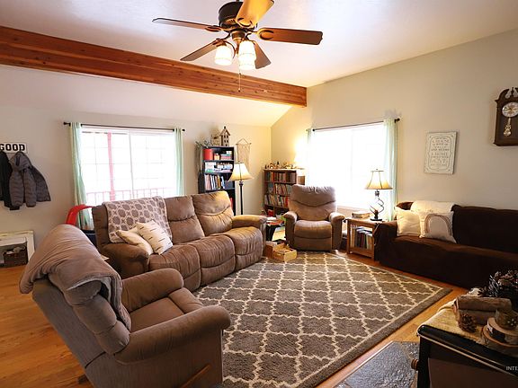 Private Country Acreage available with a 3 bed, 2 bath home sitting on approx. 9.80 acres. Enjoy Oak cabinets in the kitchen and the spacious living room with a wood stove and raised ceiling. Hardwood flooring throughout the open kitchen and dining area, the living room and entry of the home. Laundry room with built-in shelving. Bath off Master Suite with walk-in closet. Nice full North facing front porch, sliding glass door to South facing back wooden deck. Efficient gas furnace with central air. Tankless gas hot water heater. Low maintenance siding. Sprinkler for the yard from domestic well. 2 HP pump for pasture irrigation. 5 shares of water. Approx. 24x32 shop space. Ideal set up for the entire family.