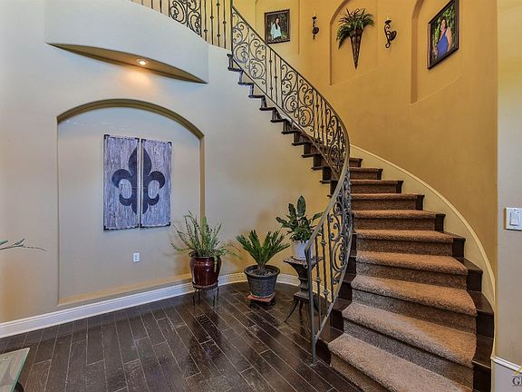 This stunning home in the highly desirable Seven Oaks at Grand Island features 4 bedroom and 3.5 bathrooms. The flawless curb appeal and beautiful landscaping is sure to amaze. The front door opens to a beautiful wrap around staircase leading to the 3 upstairs bedrooms and the media room. The media room is equipped with a sink, microwave and surround sound making it an ideal guest suite or great for entertaining family and friends. The private master suite is located downstairs in addition to an office and spacious kitchen with a beautiful island, stainless steel appliances double ovens, two sinks and granite counter tops. Formal dining, a breakfast nook, and a large outdoor covered patio are sure to make the space welcoming for large gatherings. Added bonuses include 2 balconies, a laundry chute, 2 tankless water heaters and the home is wired for an intercom system. This turnkey home has it all!!!!! Seller states actually square footage is 3967