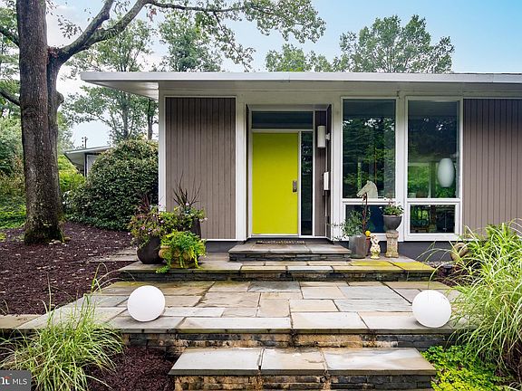This extraordinary Mid-Century Modern home designed by Architect Charles Goodman is located in the highly sought-after Hollin Hills community. Home has been thoughtfully expanded to over 2,300 square feet with additions by renowned architects Casper Neer and Eason Cross. Extensively remodeled while preserving its iconic MCM charm, the home welcomes you with an impressive entry foyer featuring soaring ceilings, a coat closet, and a striking bubble chandelier. A private home office boasts a brick wall with built-in shelving, ideal for work or study. The open-concept living spaces include a welcoming living room and cozy family room with a wood-burning fireplace and custom built-in bookshelves, as well as a separate dining room perfect for entertaining. The custom kitchen features a large center island with seating, granite countertops, stainless steel appliances, and direct access to the patio, making it a true centerpiece of the home. The main level includes a spacious primary suite with a built-in dresser, a large custom closet, and a beautifully remodeled en-suite bathroom showcasing a walk-in shower with custom marble tile. A second main-level bedroom offers a custom closet organizer and light filled windows. There is another remodeled full bathroom, complete with a skylight. A convenient main-level laundry closet adds to the home’s functionality. Upstairs, two additional bedrooms offer access to a Juliet balcony, with one bedroom featuring a walk-in closet. The large, sunlit lower-level recreation room provides additional living space, ideal for relaxing or entertaining as well as additional storage. Outdoor features include extensive hardscaping with a concrete driveway, slate patios and walkways that wrap around the home. The private, flat backyard is surrounded by mature landscaping and offers an ideal setting for outdoor gatherings. Additional storage is provided by both a detached outdoor shed and an attached exterior shed. With double-pane windows throughout and exceptional attention to detail, this home is filled with character and timeless style. Hollin Hills offers membership to 2 community pools as well as membership to a tennis and pickleball club. The scenic neighborhood boasts 7 parks, trails, an active Civic Association with seasonal celebrations, delicious super society and a friendly, close-knit environment. A commuter's dream location minutes from GW Parkway and trails, DC & the Pentagon; and south to Fort Belvoir, or north to Andrews AFB & Tysons Corner via I-495. This special address is an idyllic sanctuary to call home!