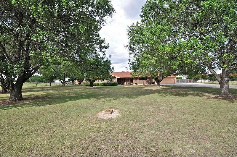 Rare Find! Stunning one story home on 2.66 fenced acres with a heated inground pool in Cibolo! This custom 3027 sq ft home shows like a model and boasts an open floorplan, dual masters, hard surface flooring throughout, three car garage w/front & side entry, 24x16 workshop, 14x13 garden shed, barn, study, built-in shelves, ample closet space, fireplace, large covered patio, glass breakfast room with panoramic views, mature fruit trees, four sides brick & much more! Won't last long! View today!