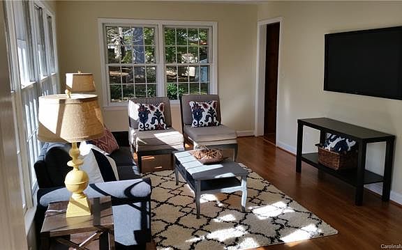 Wow! This Beautifully Updated Home is MOVE IN READY, w/ Top Of The Line, Kenmore Elite Appliances (w/ Convection Oven/ Micro., Elite Vent Hood & Glass Cooktop), Granite Counters, a Wood Burning F/P & a Big Screened Porch off the Kitchen/Family Room, Updated Baths w/ Tile Floors & Shower, New Sinks, Lights & Fixtures, Refinished HDWDS, Converted REC Room in Bsmt. w/Separate, Main Level Entrance w/ a Private BR & new, LVP Floors (perfect for Man Cave, Game Room, Office, Teenager or MIL Suite)! You'll have an Oversized, Detached Garage w/Two Attached Storage Sheds, Dual Bays and Openers, Windows & Side Door, Wired for Workshop, all on a Heavily Treed, HUGE, .75 acre, Private Lot w/ Fenced Yard & New Concrete Driveway! Home has been Soundproofed and Insulated by the City (insulation added 4 feet up in Ceilings & Attic), Soundproofed, Insulated Storm Windows on all Windows), & is centrally located close to Uptown, the US Whitewater Center, I 85, I 485 & the new Amazon Distribution Facility.