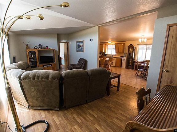 New metal roof will be installed prior to close. Large home on 6.7 acres close to town. Perfect horse property. River is close by. Large covered patio/carport in the back. Man cave out back as well. Furnace is the ONLY thing that is propane, so you will only have propane bills in the winter! Home has tons of natural light. Open floor plan, split bedroom. All the rooms are a good size. Kitchen has lots of counter and cabinet space. Large Master bedroom and bathroom. Exterior painted 3 years ago.