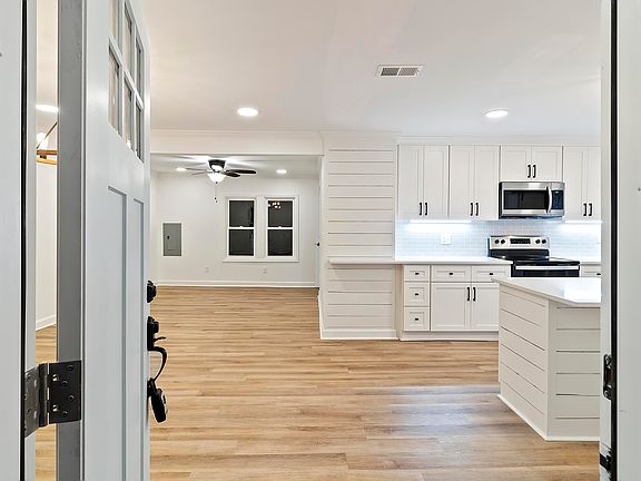 • Ceiling - Smooth, Kitchen Island, Ceiling Fan(s), Eat-in Kitchen