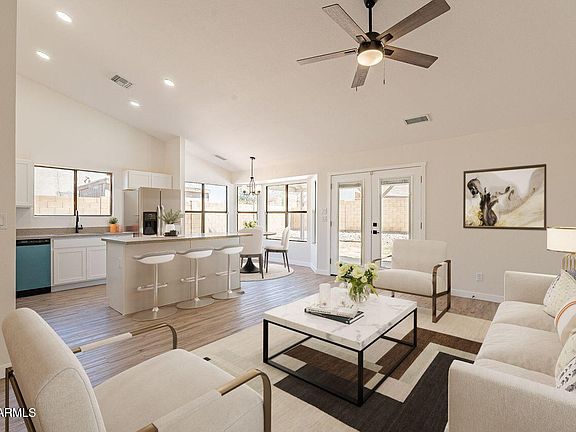 Discover this beautifully updated 4-bedroom, 2-bathroom home in a desirable North Mesa neighborhood with no HOA! Sitting on a spacious lot with an RV gate and parking, this property offers the freedom and functionality you've been looking for. Step inside to find vaulted ceilings and a bright, open layout with all-new flooring and fresh paint throughout. The remodeled kitchen features crisp white cabinetry, quartz countertops, and stainless steel appliances—perfect for entertaining or everyday living. Bathrooms have been fully updated with new tubs, showers, vanities, and countertops. Enjoy the Arizona lifestyle with a diving pool to cool off during the summer, and multiple living spaces including a formal living room and a family room off the kitchen. With a brand new roof and A/C!