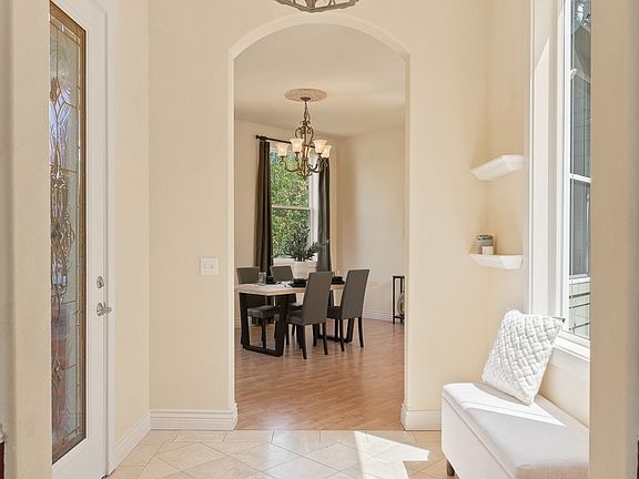 Incredible & charming home with soaring ceilings that keeps on giving everyone's needs and wants. Immediately enjoy the wonderful natural light flooding into living areas from the private, open air courtyard in the center of the home. Well thought out floor plan offers formal living or entertainment/rec room on one end then thru the foyer to gracious dining room & on to cozy great room with fireplace, backyard access plus open to kitchen w/granite counter eating bar as well as dining nook. Main level brings 4th bedroom or use as office/guest space, full bath, large laundry with sink then upper level gives 3 bedrooms including amazingly huge primary and 2 full baths. Relaxing backyard is fully fenced with patio, playset & soothing waterfall.
