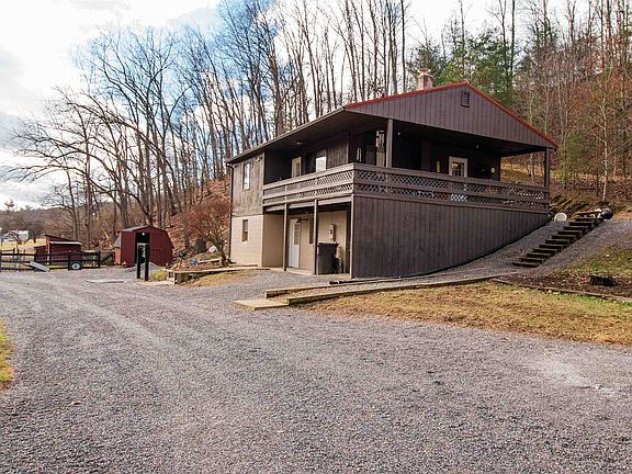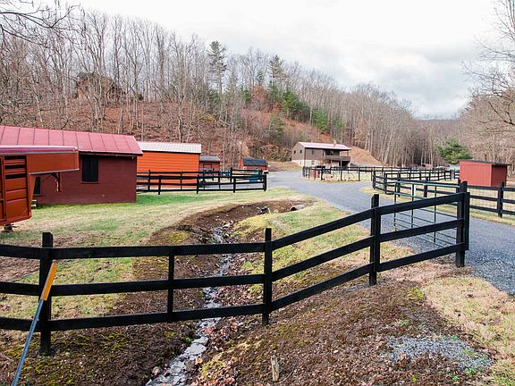 Enjoy the renewal of country living in the mountains each and every day. New metal roof over this rustic feeling home with beamed ceilings and exposed rock wall. 2 bedrooms and 1 bath up with an additional bedroom and full bath in the basement. Room for a number of livestock endeavors. A combination of 9 different barns and sheds and 7 separate turnout paddocks serve to make this a very functional farmette. From a 4 stall horse barn to goat sheds, storage sheds and a tractor shed for all your needs. All offers contingent upon sellers finding suitable housing.