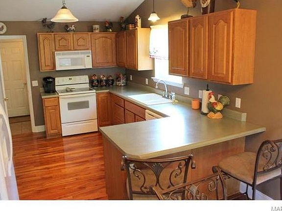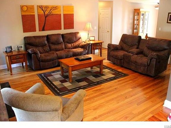 Great home in sought after subdivision! 4 bedroom ranch with 3 beautiful bathrooms. Great room with vaulted ceiling, gas fireplace and wood floors. Open floor plan to kitchen and and breakfast room. Generous cabinet space and large pantry Main floor laundry room with large storage closet. Master suite offers well organized walk in closet and luxury bath with separate soaking tub and shower with frame less shower doors ceramic tile and HEATED floors make a winter shower a cozy experience! Finished basement with large rec space and bar area, a combination of carpet and trendy stained concrete. Walk out to a great back yard with large deck and covered gazebo style layout. Wooden bar top in basement will be replaced with a laminate one before closing. Wall shelf in basement bedroom does not stay.