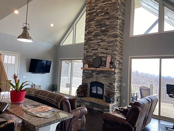 Serene mountaintop living with a grand view! Vacation home or your everyday home... Beautiful, gated access, 1,670 sq ft home constructed in the fall of 2019 with 3BR/2.5BA, 9 ft ceilings and 1.25 acres of land atop Pinnacle Mountain in Union Mills, NC. You can enter the home through the main front door or one of three sliding glass doors on the huge wraparound porch. Lots of natural sunlight pouring inside! Porch is perfect for rocking, building a fire in the outdoor fireplace, or enjoying an evening in the hot tub. Views of Grandfather Mountain all the way to Sugar Mountain Ski Lodge are in plain sight! Upon entering, the main level includes the master suite with French doors leading to the walk-in frameless glass/tiled shower, dual vanity, master closet, with lots of storage. Laundry room on main level also. The kitchen has granite countertops along with lots of cabinet space. All new stainless appliances with a very spacious island great for hosting your family and friends. You can also enjoy the eye catching floor to ceiling rocked/wood fireplace inside to stay nice and toasty on those cold snowy nights. Once upstairs, there is a loft that leads to two bedrooms with a full bath for guests. Espresso (six inch wide) hardwood floors in all of the living areas. Ceramic tile in all bathrooms and laundry room. Matching granite throughout. Carpet in all bedrooms and loft area. Dual thermostats for upstairs and downstairs. Nice storage area under deck. Mountain views from anywhere you look out up to roughly 75 miles! Home is about an hour from Asheville and Charlotte. Unlimited FAST internet is also available through SkyRunner. CPI home security installed. Updated information on 7 Mar 21: All wheel or four wheel drive is recommended for this property due to a 12% grade on the main route.