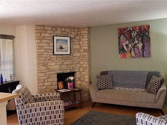 First floor unit. No carpet. Ceramic tile throughout. Fireplace in family room. Washer/dryer hookups in kitchen area. Well-maintained. Close to HEB and bus stop.