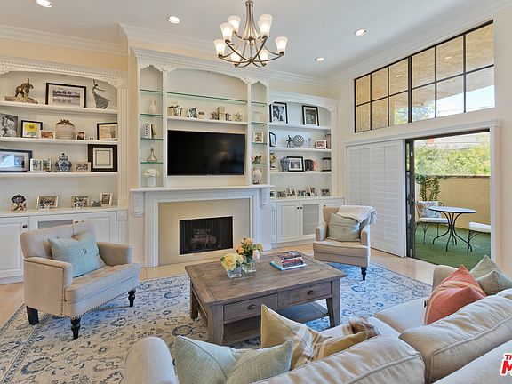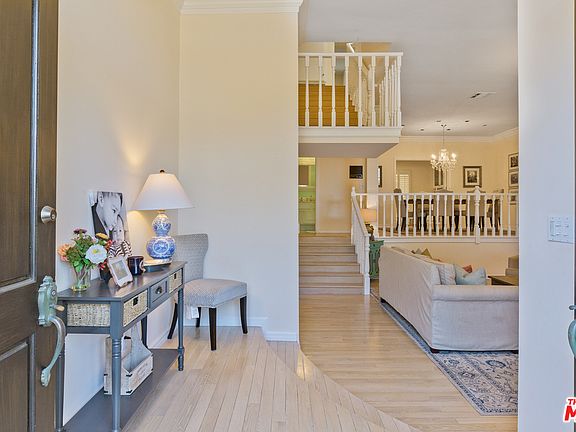 WOW a townhouse that feels like a home! Walk into a formal entry. Large and spacious living room with high ceilings, built-ins and fireplace. Sliding doors to a large outdoor patio. Step up to an open dining room with a built-in bar. Large Kitchen with tons of cabinets and an area for a family room or breakfast area and a balcony. Large master suite with walk-in closet, master bath with dual sink, tub and separate shower. 2 additional bedrooms with built-in closets. Direct access 2 car side by side garage with tons of storage. Resort like complex with just 19 units. Beautiful pool area with lounge chairs and water fountain. Walk to the market and Roscomare Road Elementary school. Close to UCLA, 405 and 101. This townhouse offers more than many single family homes in the area!
