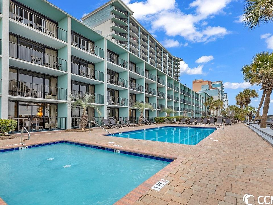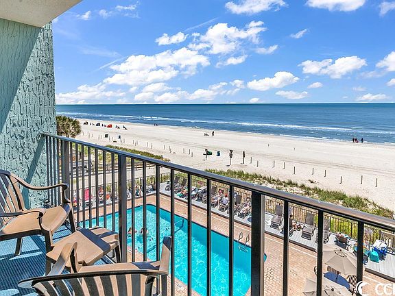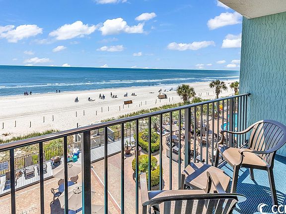 This is your opportunity to own a DIRECT OCEANFRONT efficiency condo on the top floor of the Schooner building at the wildly popular Compass Cove Resort. This unit had amazing rental numbers for 2022. Enjoy the panoramic views from your private oceanfront balcony overlooking the vast Atlantic and its miles of pristine shoreline in both directions. This fully furnished fourth floor unit has two queen size beds, kitchenette, and full bathroom. The Compass Cove offers 23 exciting water features including 6 indoor pools and outdoor pools, 3indoor and outdoor lazy rivers, 7 hot tubs, 2 water slides, kiddie pool and much more. This fabulous resort also has an on-site restaurant with indoor and outdoor seating, beachfront tiki bar, game room, fitness center, outdoor grills, firepit, gift shop, laundry facilities, and covered parking. Restaurants, attractions, entertainment, shopping, golf courses, and the airport are all in close proximity. This is a fantastic property and it is priced to sell. Hurry as this unit won’t last long!