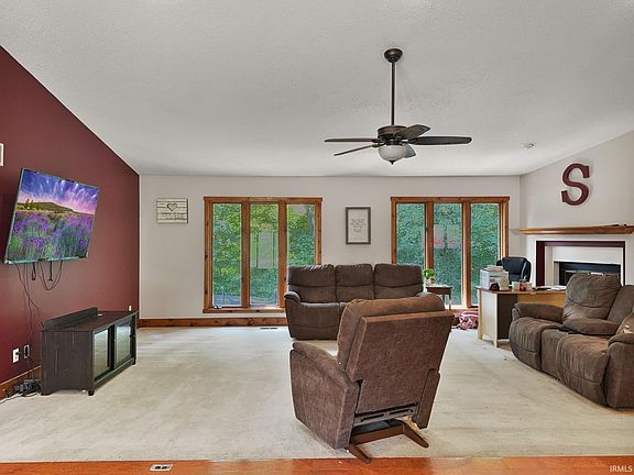 Welcome to this beautifully crafted home located on highly sought-after Schutte Road, just minutes from the University of Southern Indiana and a variety of popular dining options. With 3 bedrooms, 3 full bathrooms, and a finished walk-out basement that includes a potential 4th bedroom or office, this home offers exceptional space, charm, and functionality. Step onto the inviting front porch and into a bright, open-concept interior. The expansive living room greets you with soaring ceilings, tall windows that bathe the space in natural light, and a cozy gas-log fireplace—perfect for gathering with family or relaxing at the end of the day. The seamless flow leads into the heart of the home: a well-appointed kitchen featuring rich wood cabinetry, sleek dark countertops, a stylish tile backsplash, and a convenient layout that opens to both the deck and attached 2-car garage. The adjacent deck is ideal for outdoor dining, entertaining guests, or enjoying peaceful views of the backyard. The formal dining room boasts a striking cathedral ceiling and is perfect for hosting holidays or dinner parties. Down the hall, you'll find three generously sized bedrooms with ample closet space. Two bedrooms share a centrally located full bathroom, while the private primary suite offers a spacious closet, dedicated vanity area, and an en-suite bath complete with a Whirlpool tub and separate shower—creating a true owner's retreat. Head downstairs to the fully finished walk-out basement, where you’ll find a large family room perfect for a home theater or game room. A versatile office space can easily serve as a 4th bedroom, and the third full bathroom adds convenience for guests or extended family. Two large unfinished rooms provide endless potential—whether for storage, a home gym, or future finished living space. With a little bit of love, this home offers the perfect blend of comfort, space, and location. Don’t miss your opportunity to make it yours! Home being sold as is.