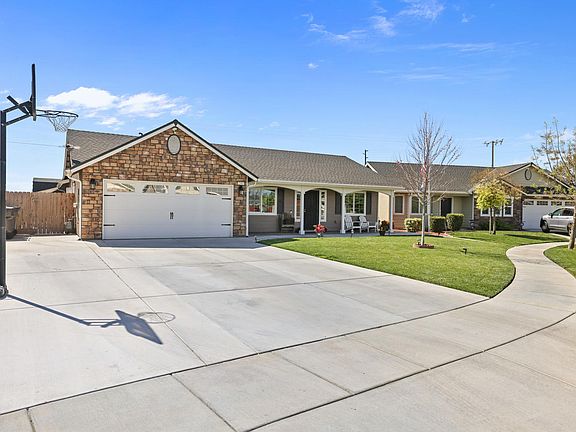 Beautiful front porch curb appeal with RV Parking! This vibrant home located in a cul-de-sac in SE Tulare is the perfect family home! 3bd/2ba with 1690sq ft, vaulted ceilings, and open concept living! Outside you'll find a covered patio, a dog run on one side and plenty of space to play or entertain! The garage is currently being utilized as a bonus living area but can be easily converted back to a garage for parking your vehicle.
