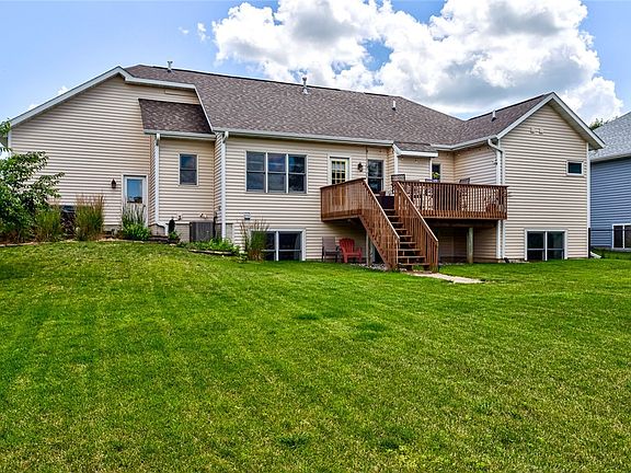 Nestled in a welcoming neighborhood community, this charming home offers the perfect blend of comfort and convenience. With two delightful parks, one featuring a serene pond, and a scenic walking trail nearby, outdoor enthusiasts will delight in the natural surroundings. The spacious living room boasts a soaring 12 ft vaulted ceiling and a cozy gas fireplace, while the bright and airy kitchen features custom cherry cabinets and a dining area with picturesque views. With a total of 5 bedrooms and 3 full bathrooms, including a master bedroom with a luxurious en-suite bath, complete with a jetted tub and dual sink vanity, this home offers ample space for relaxation and rejuvenation. The lower level showcases a generous great room with full daylight windows, a convenient kitchenette, and two additional bedrooms with walk-in closets. Step outside to the deck overlooking the expansive yard, while a patio behind the two-car garage offers a peaceful retreat for unwinding. Located just minutes from ISU, this meticulously maintained home is a true gem not to be missed. Recent updates include a new roof, gutters, AC, and flooring, ensuring a move-in ready experience for the next lucky homeowner. Don't wait to make this your new home sweet home!