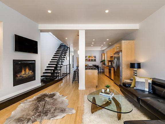 This widely published LoHi icon was famed architect Brad Tomecek's abode. Modern meets artistry in the LEED certified green home that boasts prestigious design awards from the American Institute of Architects. From the first steps inside this fantastically bright home is a raised main level with an open floor plan. The living room is home to a built-in gas fireplace that sits elevated. Sliding glass doors lead out to a second level, walk-out terrace with views of the trendy neighborhood. In the kitchen, light-hued wood Merillat cabinetry and blonde-toned wood floors complement the dramatic black stone countertops. The space is shared with the dining room with a decorative alcove ceiling. An industrial-inspired staircase ascends to three of the four en-suite bedrooms including the master suite with an expansive balcony and city view. The back has an urban courtyard with a secret garden. Located in LoHi where Denver's renowned restaurants, bars and shops are, this icon is an urban haven.