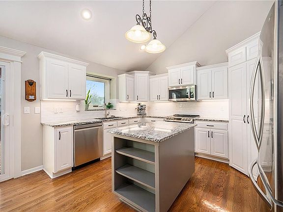 Incredible 4 bedroom, 3 1/2 Bathroom, 3 Car Garage Atrium Split in much desired Olathe West School District!! OVER $55,000 in recent improvements!! SO MUCH NEW!! Beautiful vaulted ceilings, main floor living room with large window to let in natural light! Updated kitchen with Ashen White Granite kitchen countertops, hand formed white subway tile backsplash and LED under cabinet lights, with newly painted kitchen cabinets and island. Stainless steel appliances in 2021, ALL stay with home. Upstairs hosts the large primary bedroom with great bathroom, laundry room and 2 other bedrooms, and bathroom with double vanity. Walkout basement has cozy living area with fireplace. Huge tiled mudroom with 1/2 bath off of the 3 car garage. Daylight sub-basement to 4th bedroom and own bathroom. Whole exterior painted last year, and front windows were replaced with Anderson Fibrex composite casement windows. Some pictures posted show newer landscaping from last year which includes paver planters around deck, family room window, and south fence line and hearty flowering shrubs along fence and deck. Property also features a Rachio Smart WiFi irrigation system and fully fenced backyard. Newer HVAC system, regularly serviced. Smart WiFi enabled Genie garage openers/motors. THIS IS A MUST SEE!!!