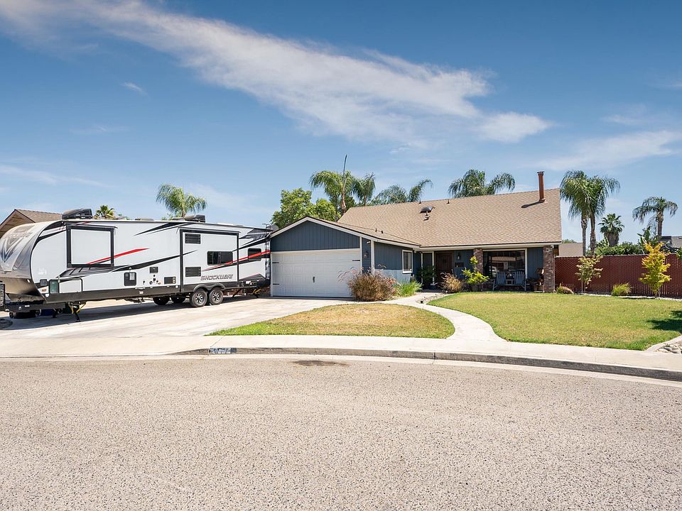 Move in ready home in Porterville! This home has it all. Beautiful curb appeal with RV parking, green grassy lawn and covered porch. The living room is open with plank flooring that leads into the dining room and kitchen. The kitchen has amazing appliances, a huge island, granite counters, and a wood feature on the ceiling! Master is large with an open bathroom feel. There is an additional bedroom downstairs. Upstairs are 2 bedrooms that share a bathroom as well. Out back us an amazing covered patio and inventive planter across the back fence. The side grassy space has room for whatever your heart desires! This one won't last long.