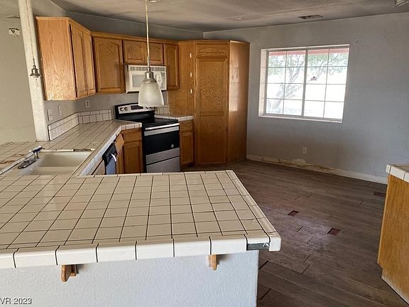 1 story home with 3 bedrooms and 2 baths located in Pahrump. The kitchen features tile countertops. The primary bathroom has a separate shower and bathtub. The home also includes a covered patio and a detached 2 car garage. Show today! All figures and measurements are only approximate. Buyer is to verify schools, HOA, measurements and utilities.