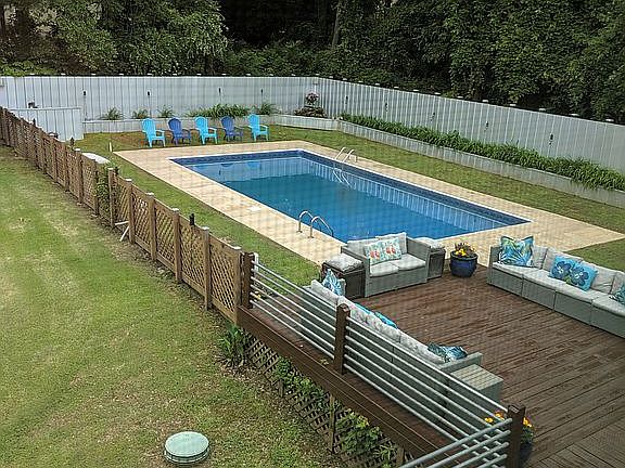 Two story, full brick with 4 bedrooms, 3 full baths & one 3/4 bath home on a dead end street in a quiet, established neighborhood. First floor master has walk-in tiled shower with marble pebbled floor, his and hers walk-in closets and a private deck overlooking the back of the 1.7 acre lot. Second floor master has en-suite bathroom and two walk-in closets. There are two additional bedrooms, a full bath and an office upstairs. First floor has an additional full bath with soaker tub and access to the deck and in-ground pool. (No wet feet going all through the house to potty!) New flooring throughout. Roof, heat/air units (2), decks, pool liner, tankless water heater, stove and beverage cooler are all new. Kitchen is newly remodeled with soft-close upper and lower cabinets, walk-in pantry as well as a wall of storage cabinets. Kitchen counters and island are topped with graphite marble which has the look of marble but more durable. Recessed lighting in kitchen, living and master. All other light fixtures are new. Living room, master bedroom and pool have smart-home controls for tv, lights and sound. Both private deck and main deck have mounts for outdoor tvs. This home is perfect for raising children and longs once again for the pitter-patter of little feet.