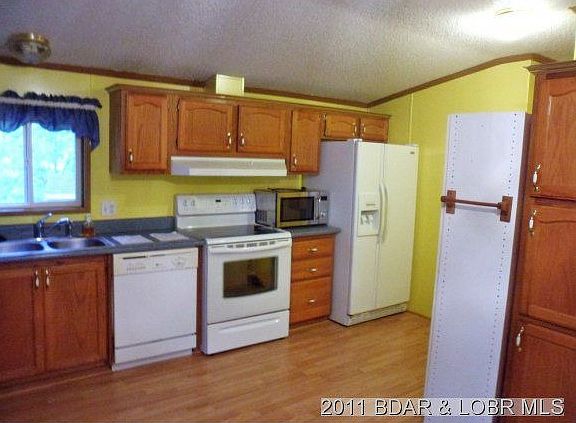 Great, very private location 6.5 Acres, close to Camdenton, borders city limits. 1997 single wide Mobile, 3 bedroom, 2 bath, with large additon for a Family room or Game room. Large Oversized garage, plus 2 smaller garages, storage Shed, Garden area, orcahard, Brokered And Advertised By: Associated Brokers Lake of the Ozarks Listing Agent: CHUCK BURNS