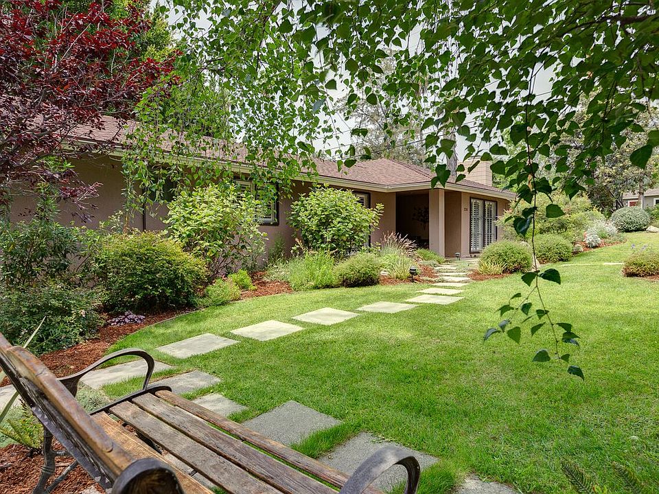 This elegant mid-century home, built by the esteemed contractor Charles E. Wirch, sits on a private drive in the Altadena Country Club neighborhood. The three bedroom, three bath stunner has been extensively remodeled throughout and welcomes the scenic outdoors in with its streamlined architecture that integrates windows wrapping the exterior so as to have lovely views from every room. The house has an open floor plan and a feeling of expansiveness because of its light-filled spaces and tall ceilings, including a vaulted pitch in the living room. There is a beautifully redone kitchen with custom cabinets, granite counters and an inviting bar and breakfast area. Other highlights include a master suite with a spa-like bath and a raised patio, sited next to a trickling fountain, that offers golf course views. The spacious, professionally landscaped lot includes a deep garden planted with drought tolerant, native plants that functions as a place to relax and look up at the sweeping San Gabriel Mountains or, simply, as an area to quietly retreat. There is also a backyard with patio that is the perfect area to dine or celebrate with friends. This is a true beauty in our wonderful foothill community!