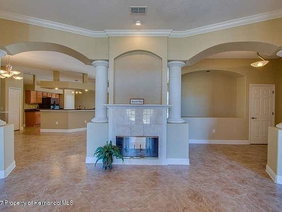 Active with Contract. Enter into your Gorgeous open foyer with double sided fireplace. Two dens/bonus room with French doors. Spacious Great room with tray ceiling; large open kitchen with double wall oven; cooktop; beautiful cabinetry; breakfast bar & nook. Upscale fixtures and recess lighting. Master bedroom suite features a tray ceiling, sitting room, his/hers closets, master bath with dual sinks, walk in shower and separate soaking tub. Split floor plan with 3 additional spacious bedrooms and 2 baths. Laundry with upscale washer & dryer. Extend your living space by opening your pocket sliders to the covered screened/caged in lanai and sparkling pool. Side entry garage plus a Detached 4 car garage features electric & a/c. A Car Lovers Dream! Home is gated! Seller offering a home warrant