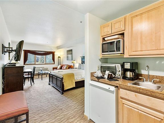 Studio close to the slopes in Keystone. Walk or take a quick free bus ride to the lifts at the nearby River Run Village. Building amenities include underground parking, pool & hot tub, outdoor BBQ area, fitness room, ski lockers, and extra storage. Restaurant, small grocery, and spa on the ground floor.