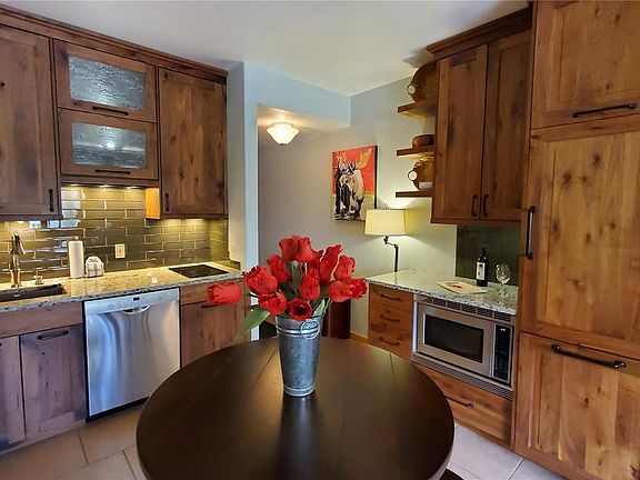 Everything you want in a Luxury top floor studio with stunning upgrades that include a full kitchen w/full size Bosch dishwasher & Liebherr refrigerator/freezer, convection microwave oven, induction 2 burner glass stove, custom Walnut Cabinetry by Cutting Edge, tiled back splash, beautiful granite counter tops in both kitchen & bathroom. Enjoy world class skiing, shops, restaurants, entertainment in River Run. Great building w/indoor pool, hot tub, gym, ski locker, underground parking & more.